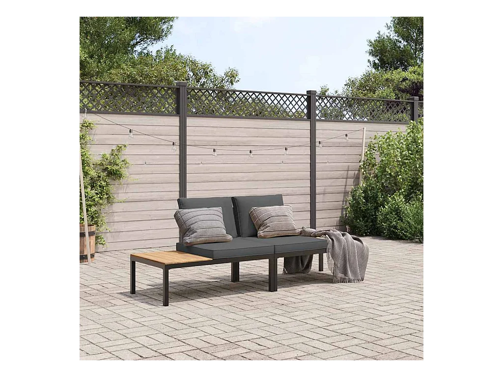 Salon de jardin 2 pièces avec coussins noir aluminium