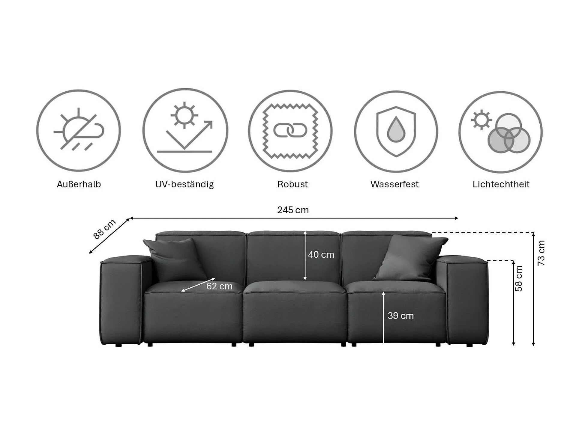 Salon de jardin 3+1+1 MALIBU, tissu ODYSSEY, anthracite