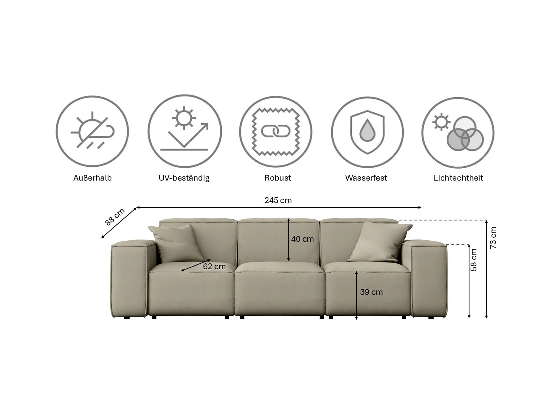 Salon de jardin 3+2+1 SONNE, tissu ARTICLE, beige