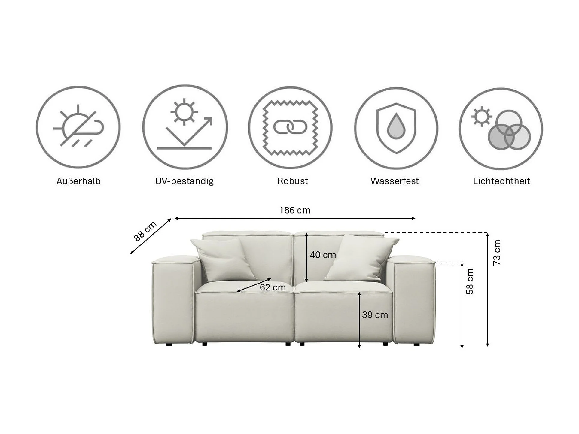 Salon de jardin 2+1+1 MALIBU, tissu ODYSSEY, beige foncé