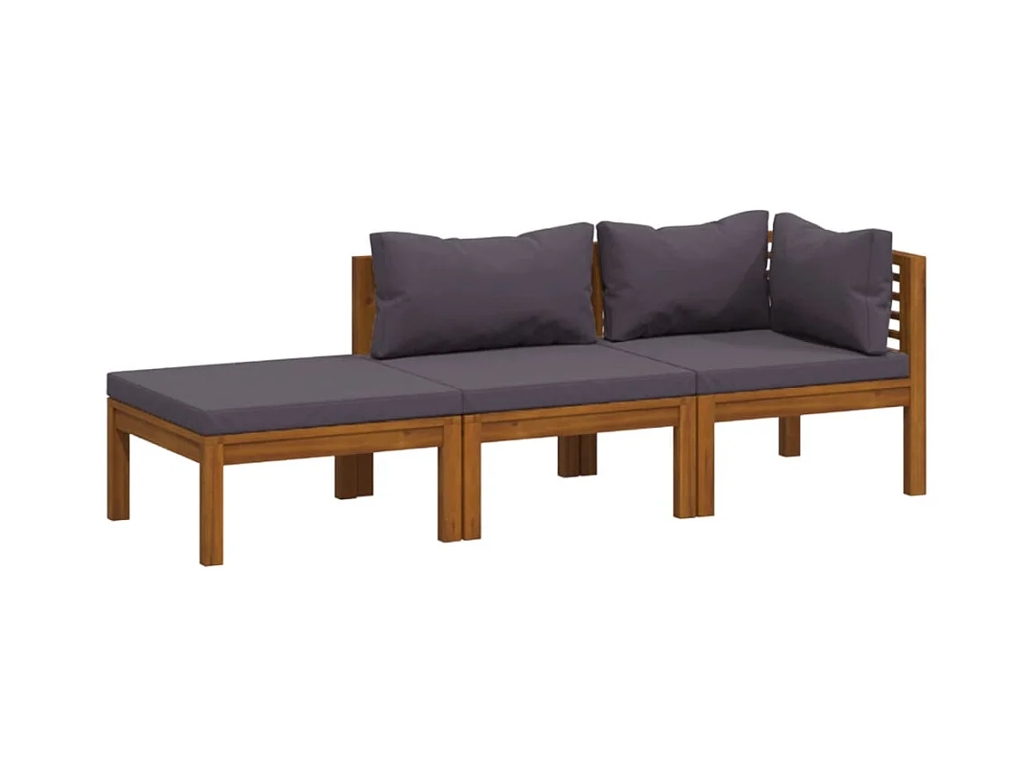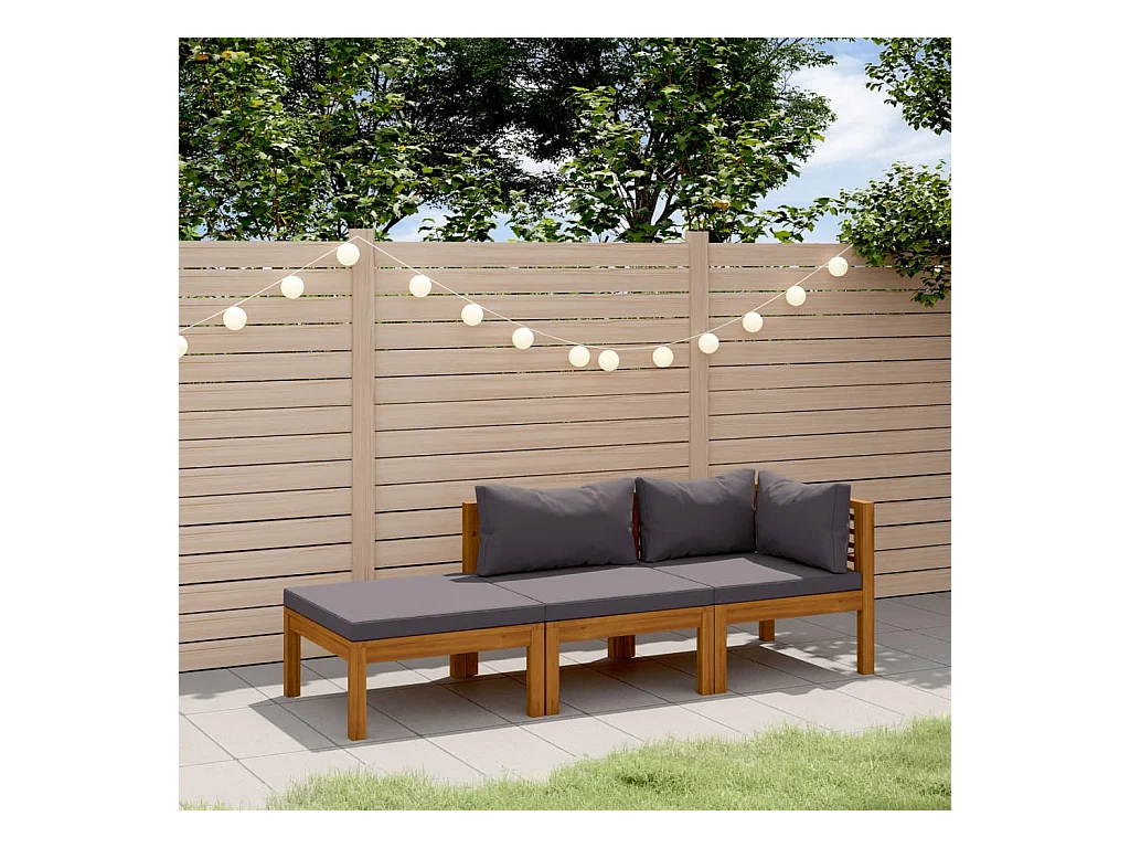Salon de jardin 3 pcs avec coussin Bois d'acacia solide BE20190