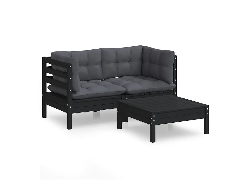 Salon de jardin 3 pcs avec coussins anthracite Bois de pin BE61913