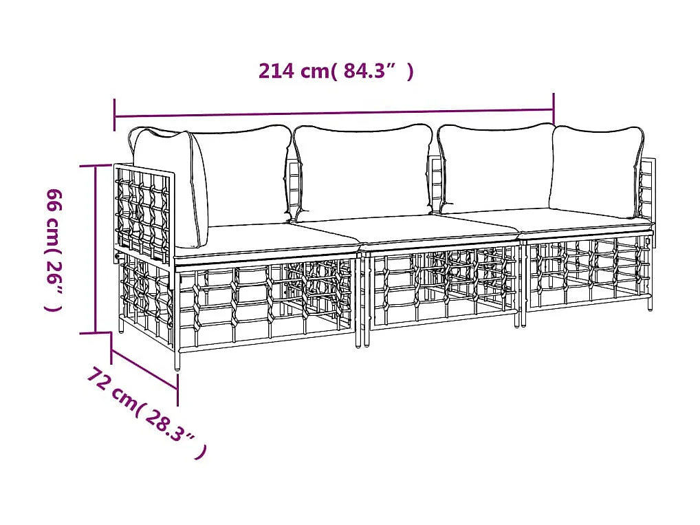 Salon de jardin 3 pcs avec coussins anthracite résine tressée