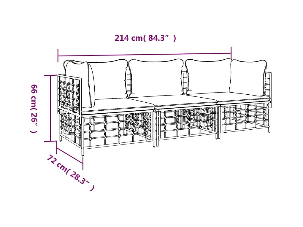 Salon de jardin 3 pcs avec coussins anthracite résine tressée
