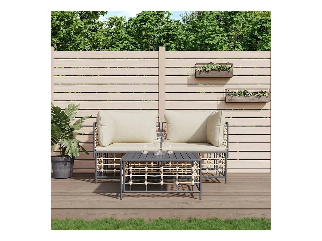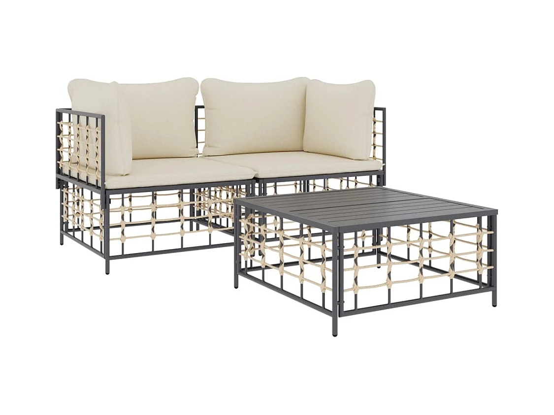 Salon de jardin 3 pcs avec coussins anthracite résine tressée REO32992