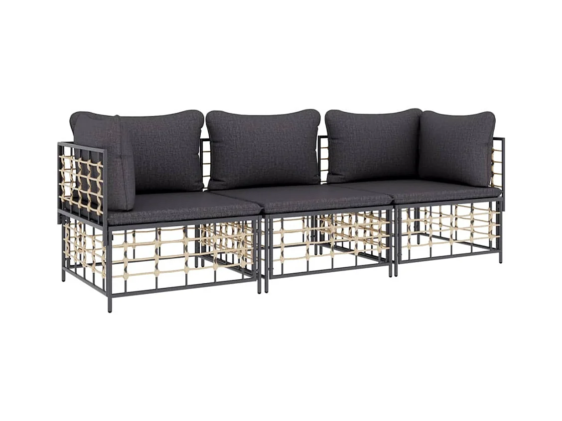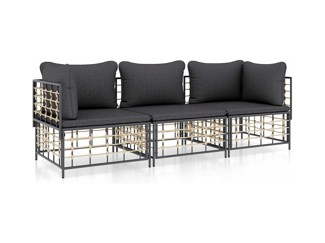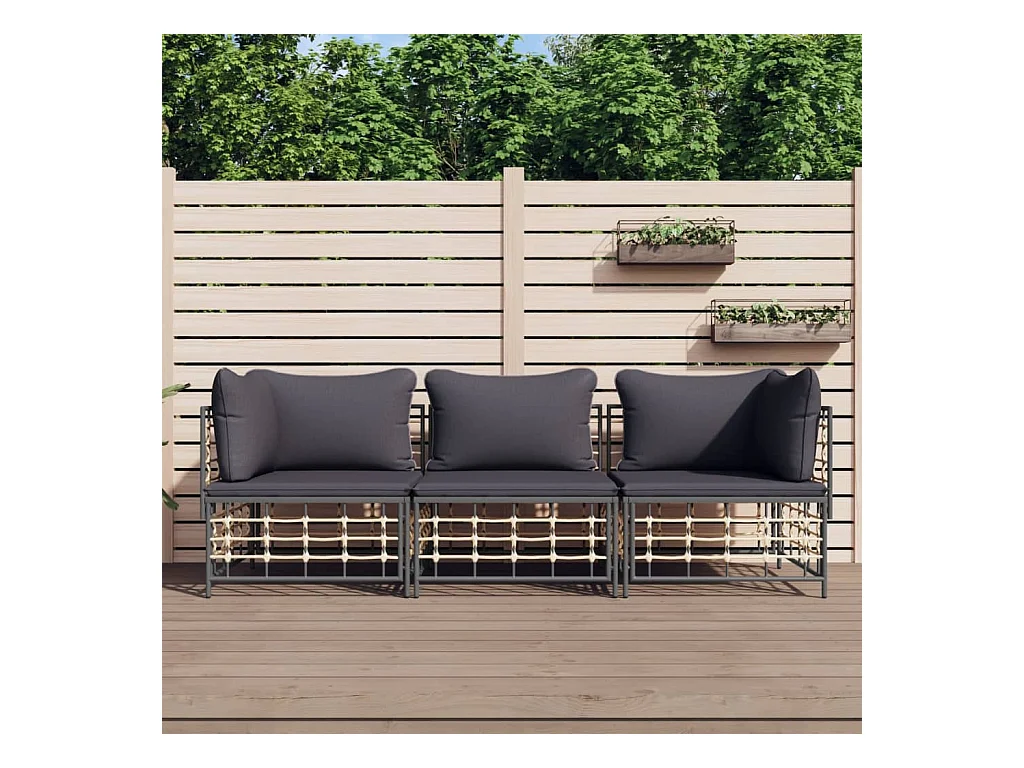 Salon de jardin 3 pcs avec coussins anthracite résine tressée REO32992