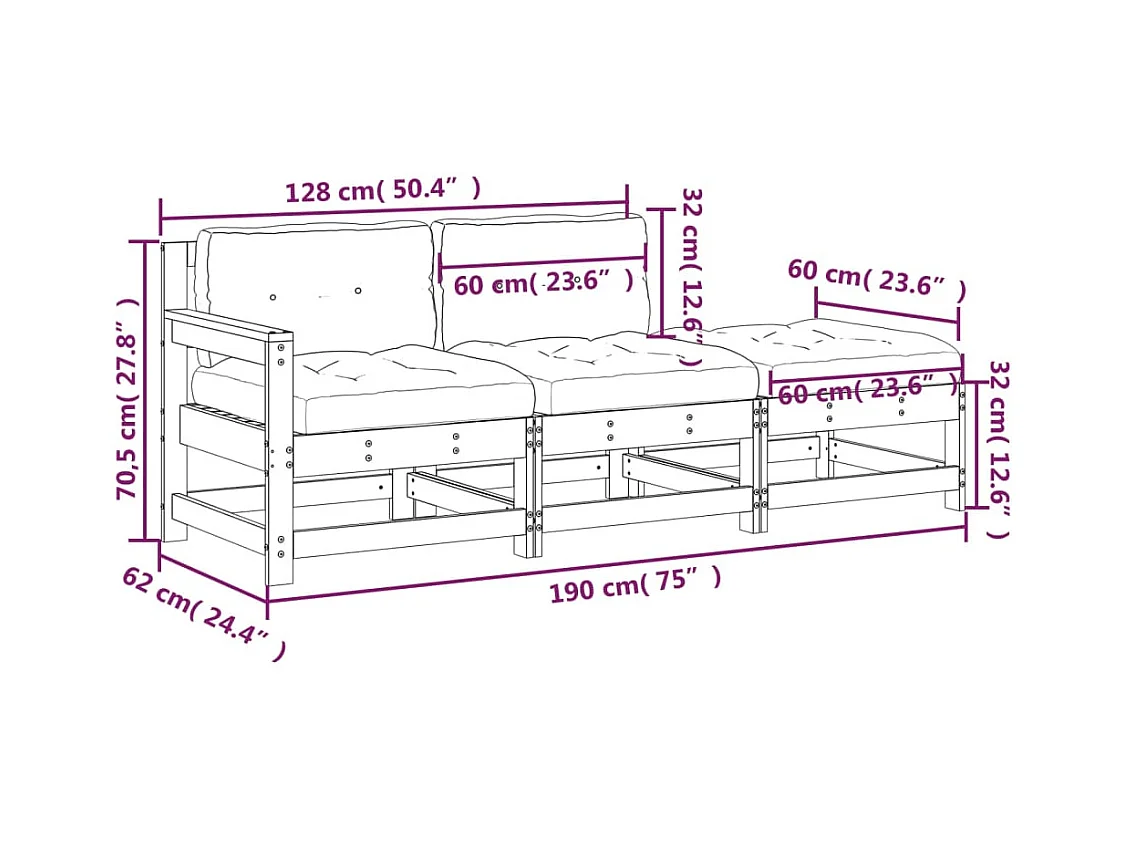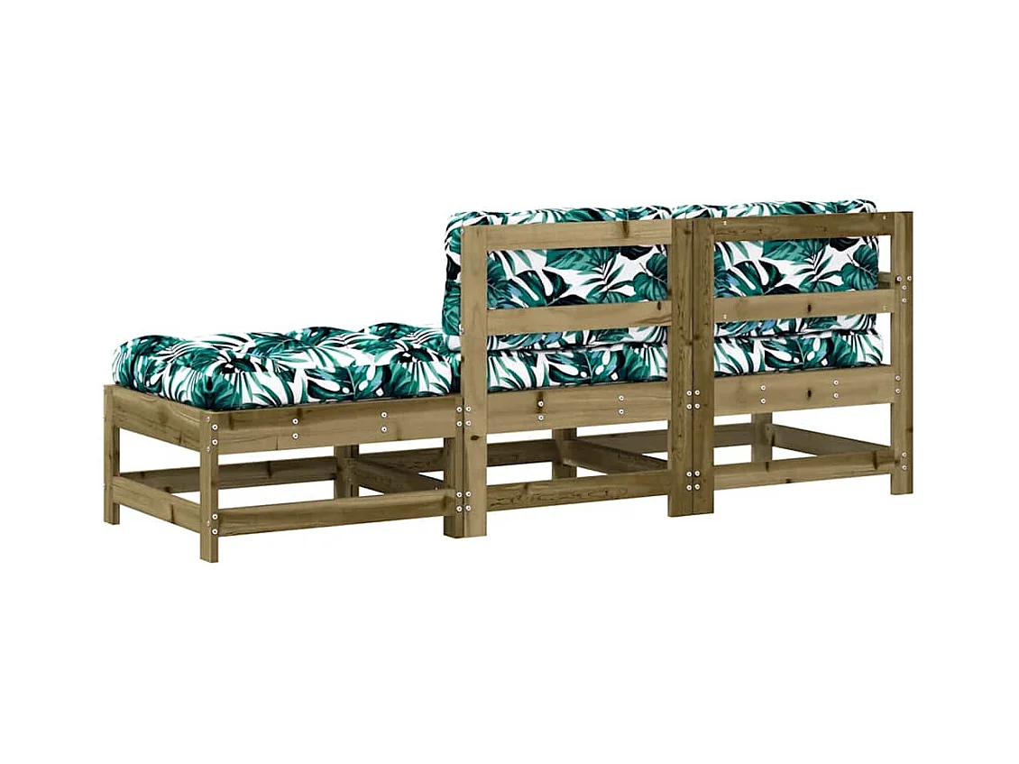 Salon de jardin 3 pcs avec coussins bois de pin imprégné