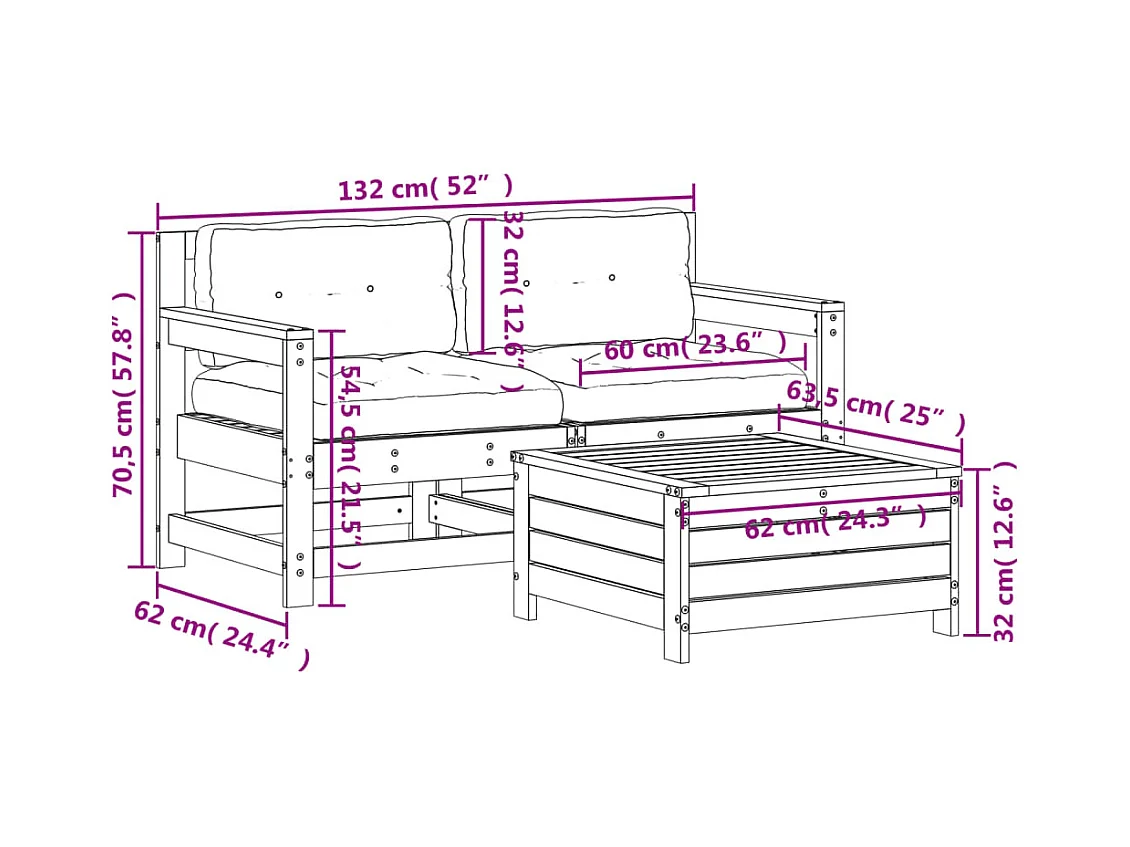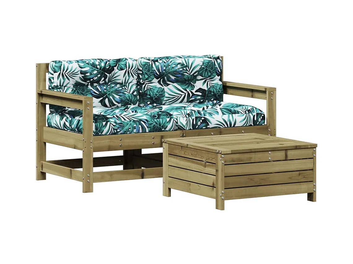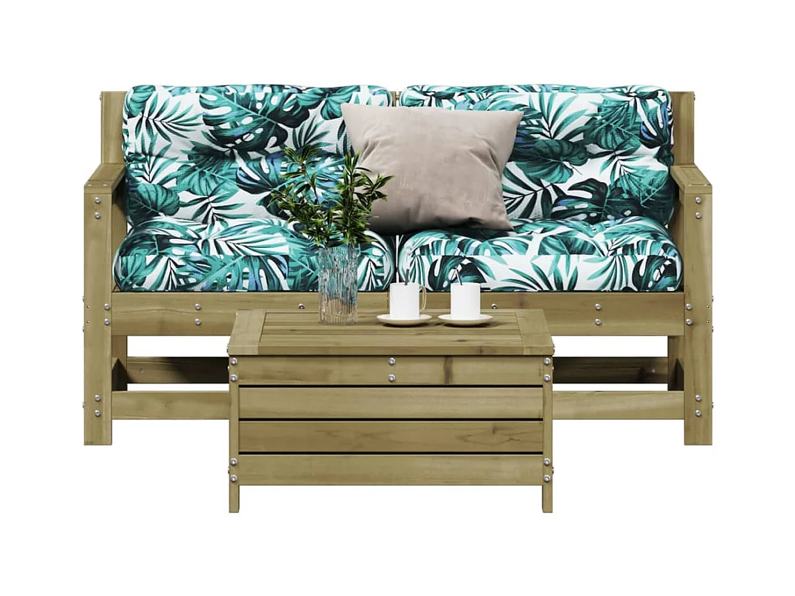 Salon de jardin 3 pcs avec coussins bois de pin imprégné