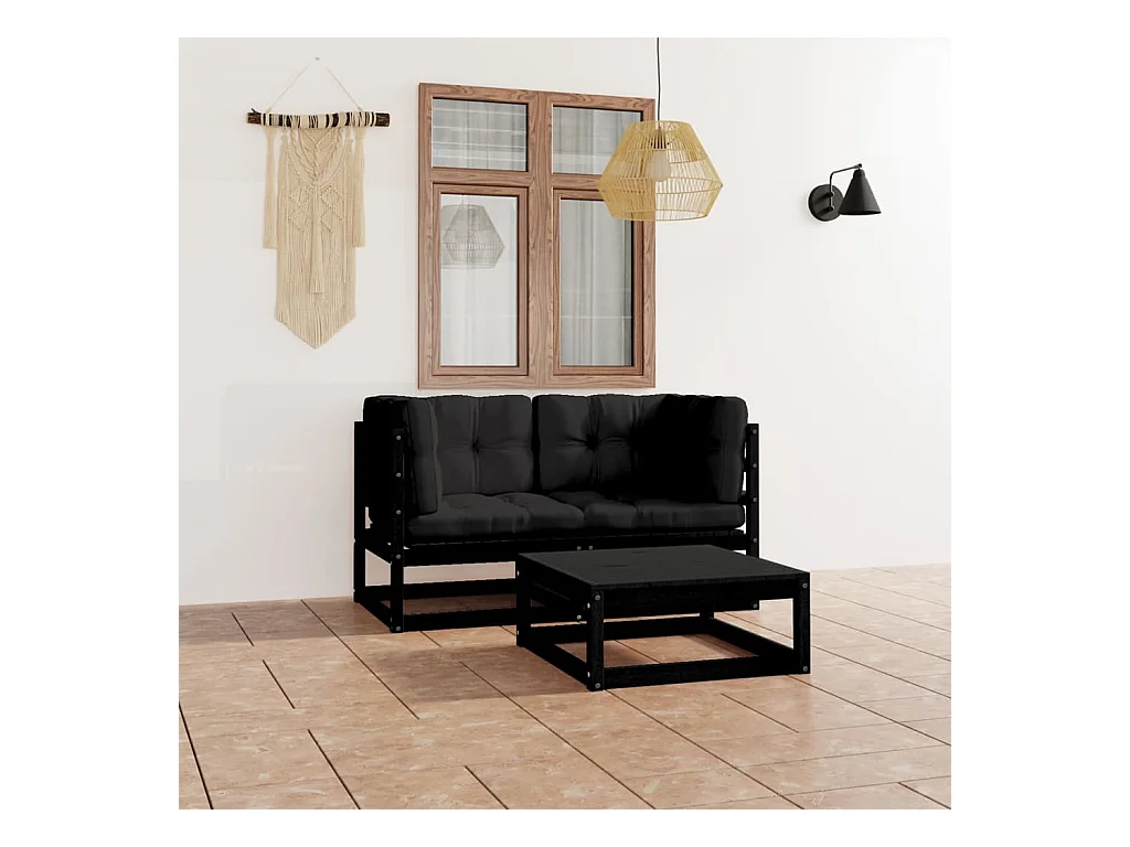 Salon de jardin 3 pcs Noir Bois de pin massif