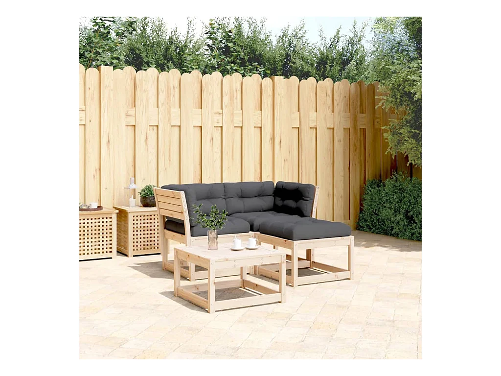 Salon de jardin 4 pcs avec coussins Bois de pin massif