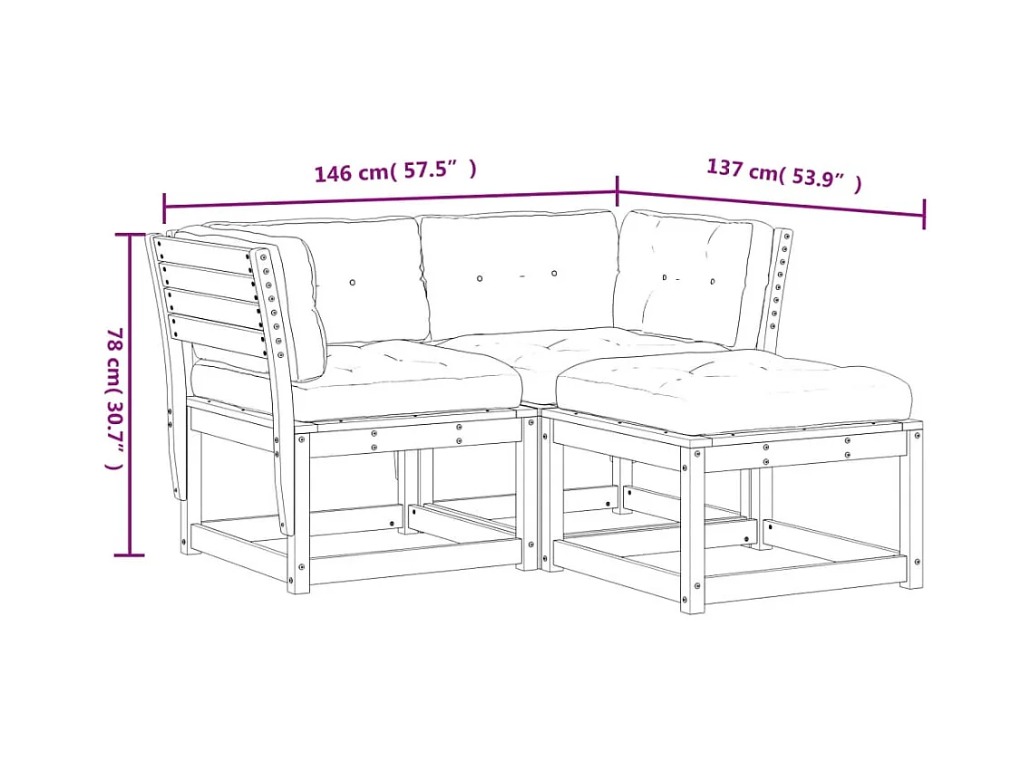 Salon de jardin 3 pcs avec coussins bois de pin massif