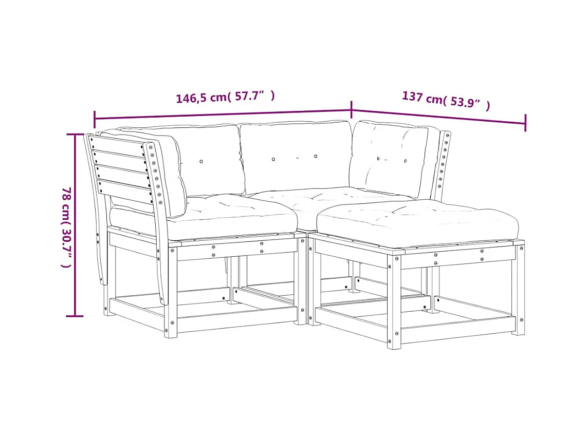 Salon de jardin 3 pcs avec coussins bois de pin massif