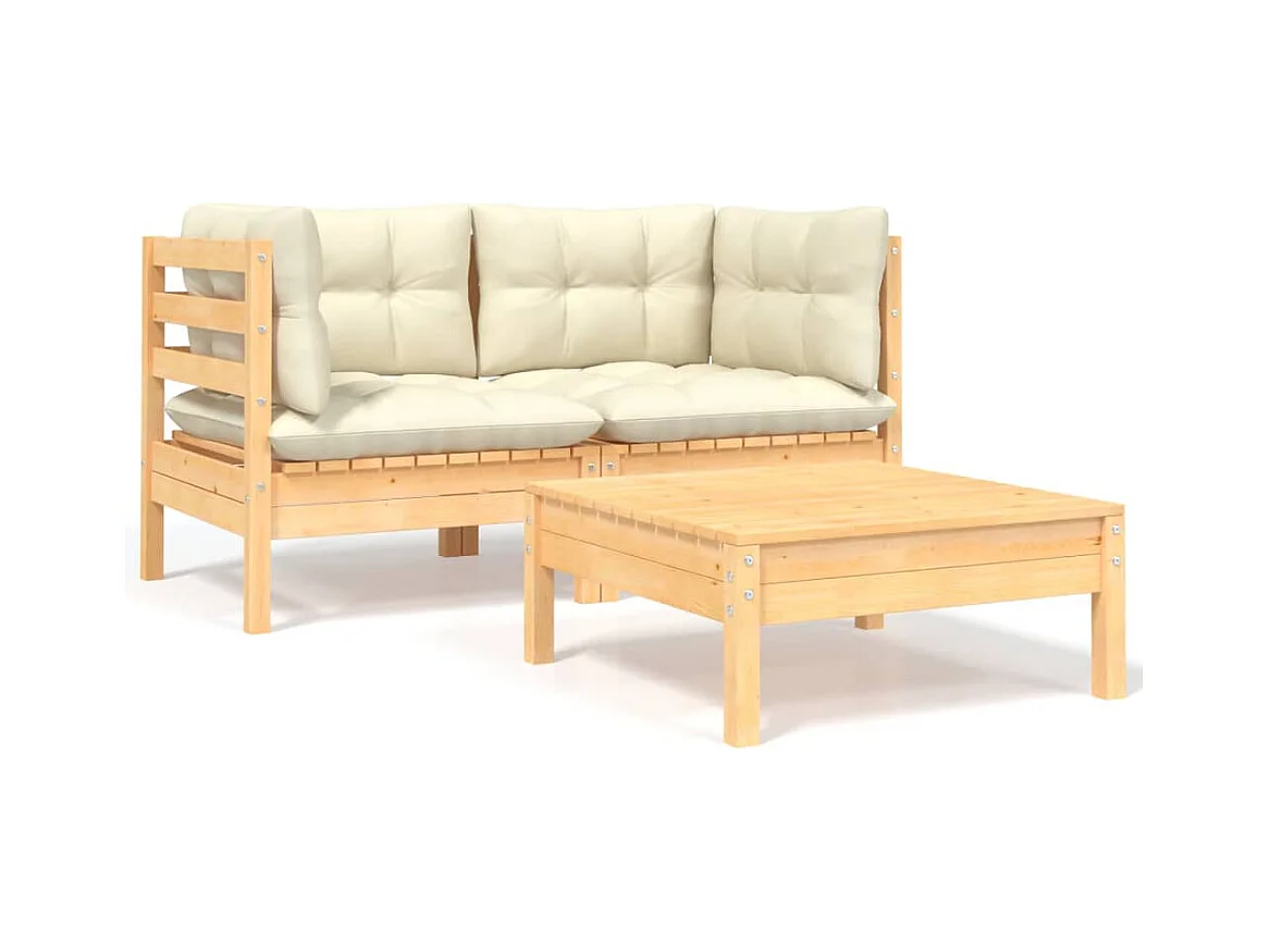 Salon de jardin 3 pcs avec coussins crème Bois de pin massif FR13866