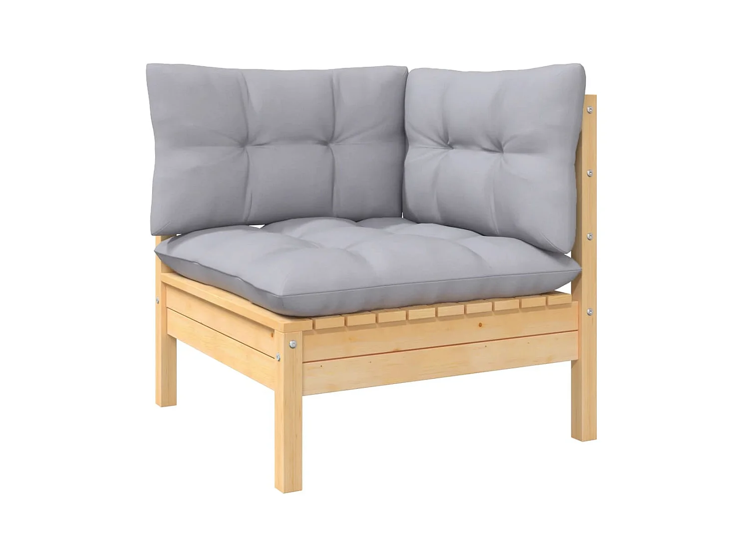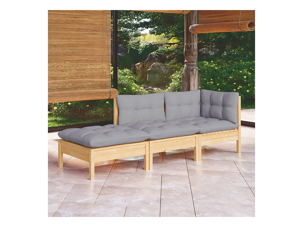 Salon de jardin 3 pcs avec coussins gris Bois de pin massif