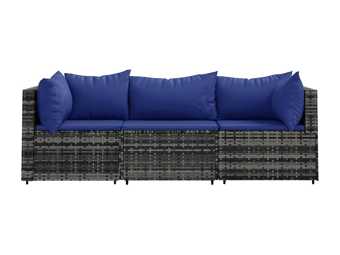 Salon de jardin 3 pcs avec coussins Gris Résine tressée