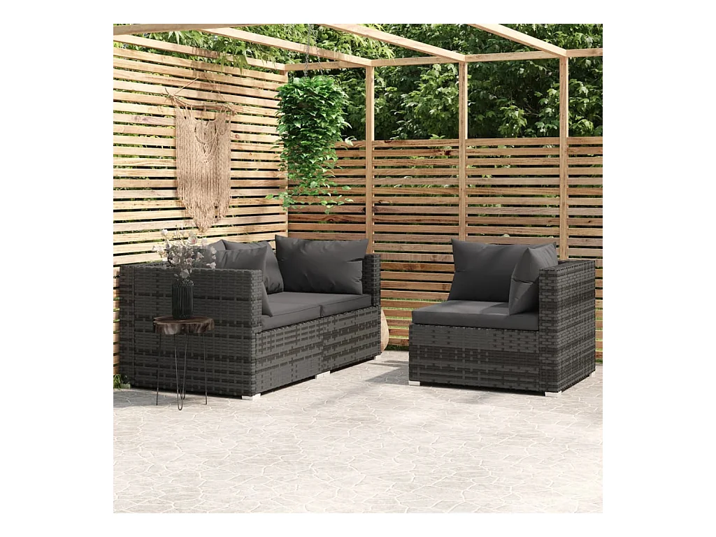 Salon de jardin 3 pcs avec coussins Gris Résine tressée FR73463
