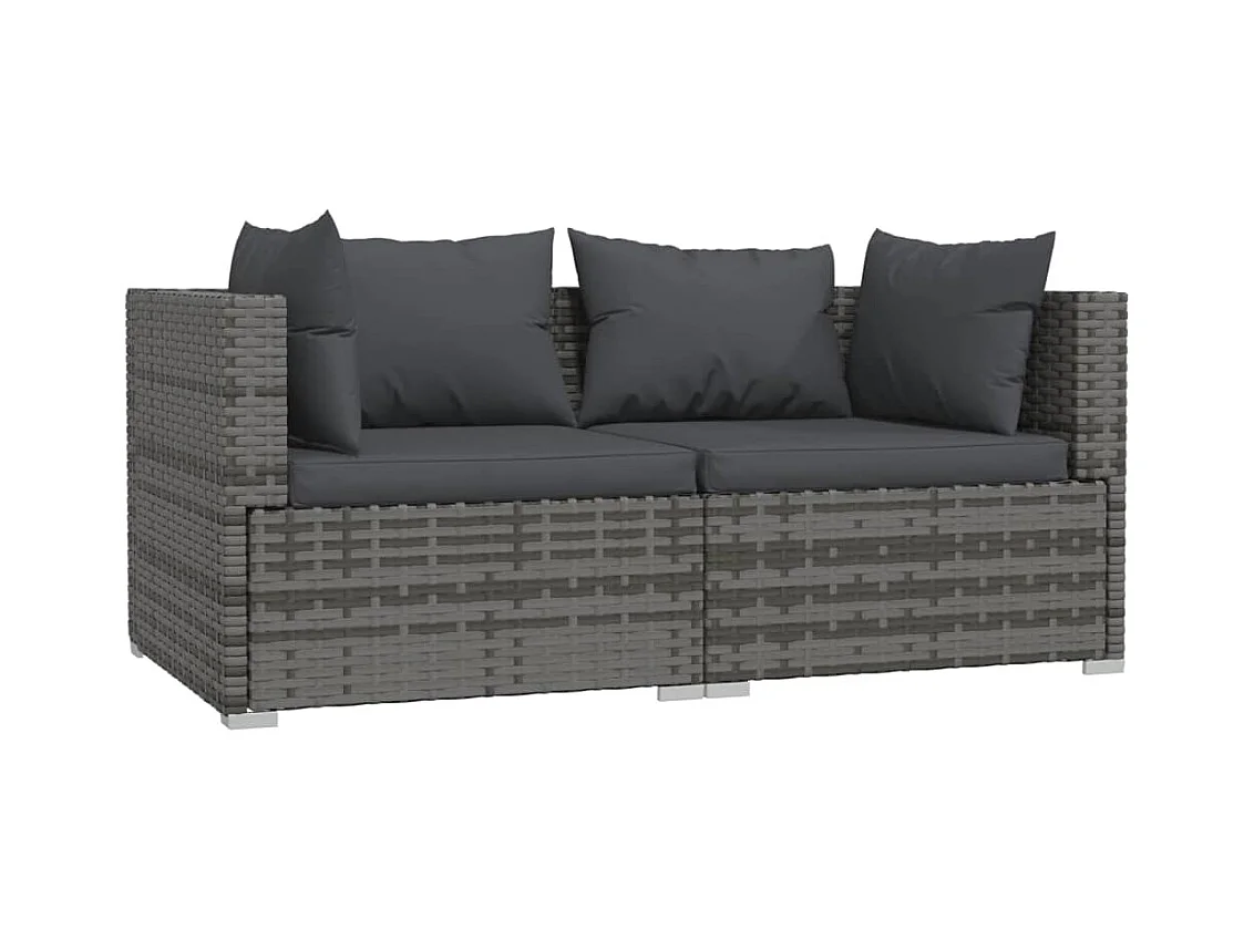 Salon de jardin 2 pcs avec coussins Résine tressée Gris BE91497