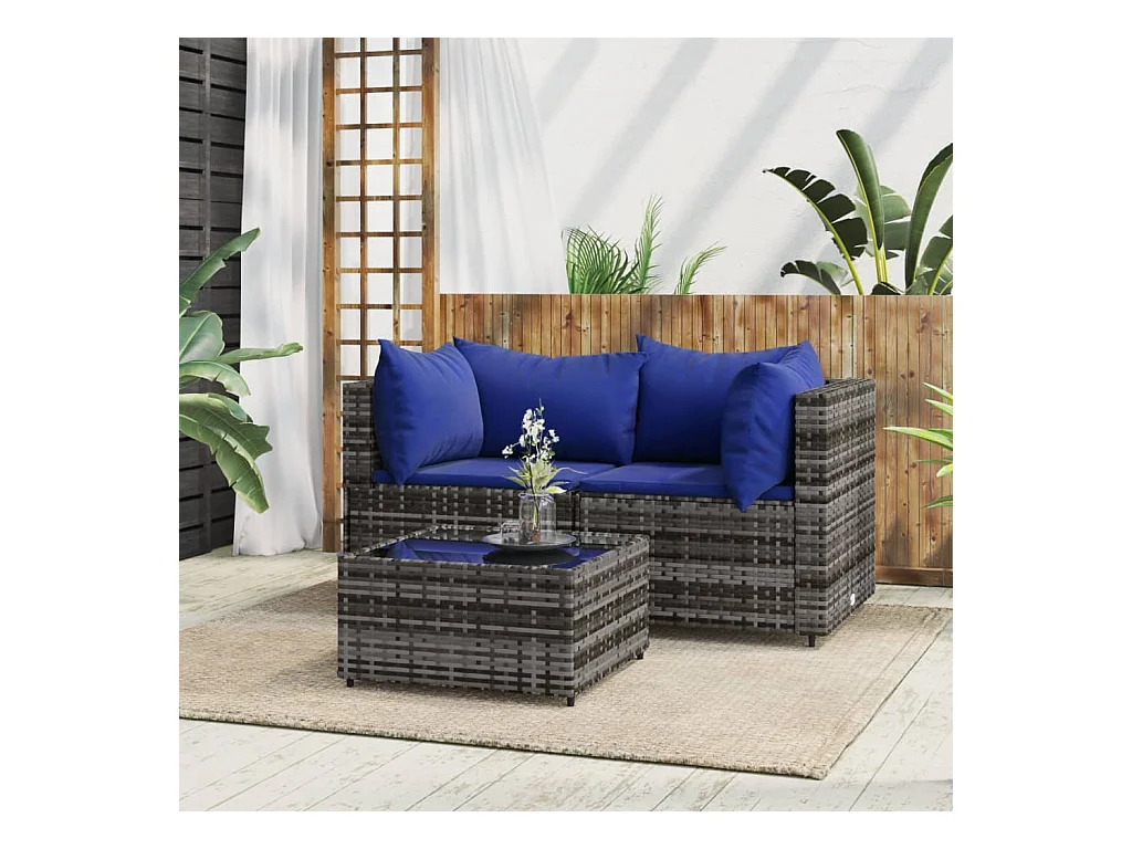 Salon de jardin 3 pcs avec coussins Gris Résine tressée REO82514