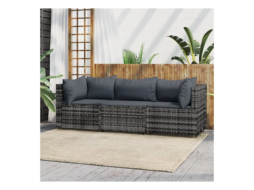 Salon de jardin 3 pcs avec coussins Gris Résine tressée REO82514