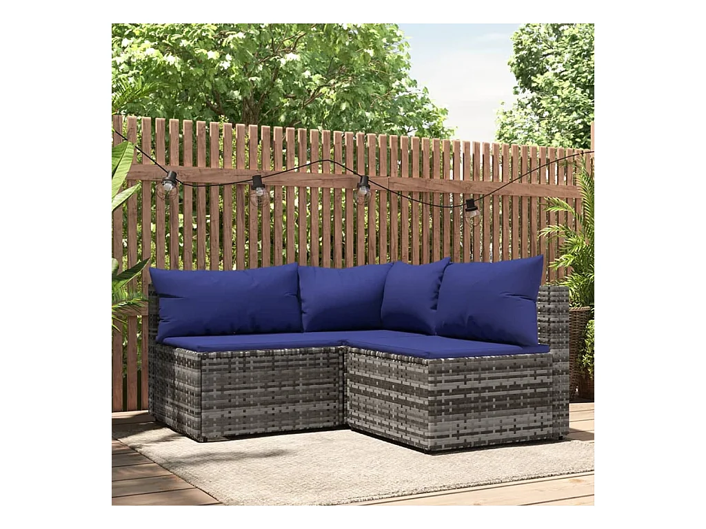 Salon de jardin 3 pcs avec coussins Gris Résine tressée REO82834