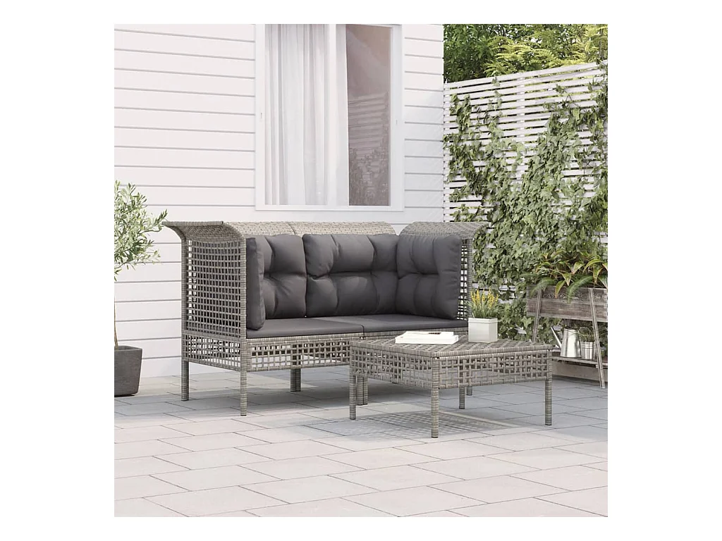 Salon de jardin 3 pcs avec coussins Gris Résine tressée BE56359