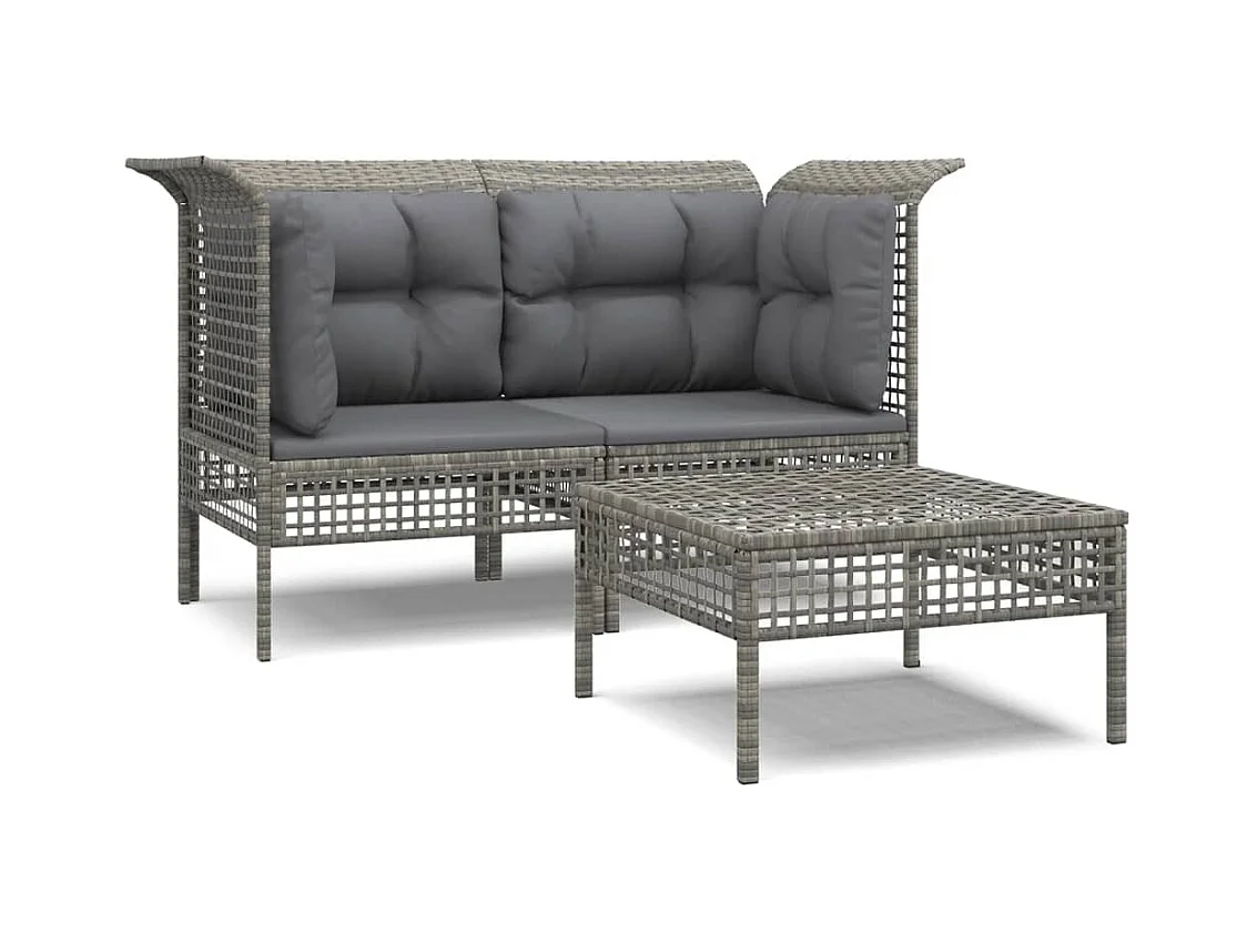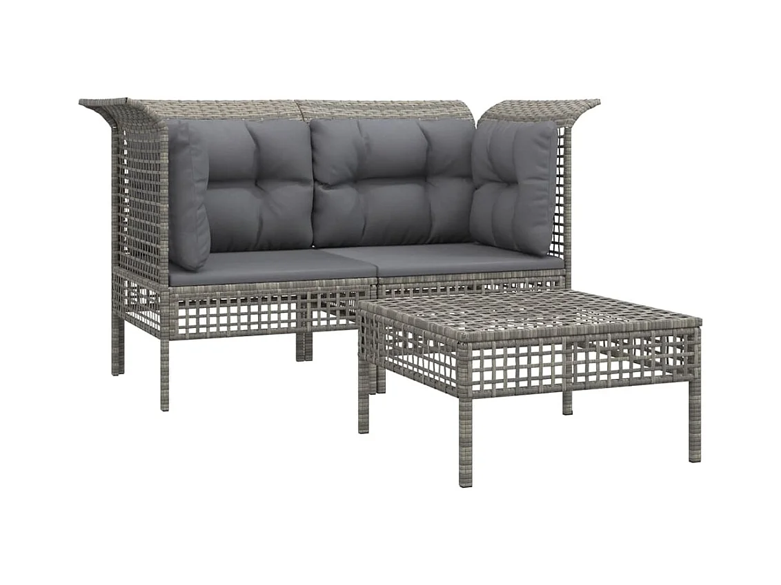 Salon de jardin 3 pcs avec coussins Gris Résine tressée BE76576
