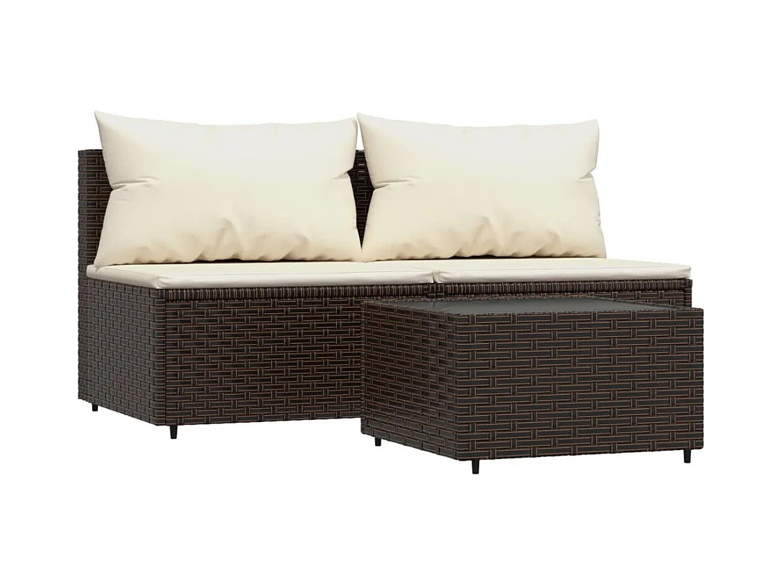 Salon de jardin 3 pcs avec coussins marron résine tressée