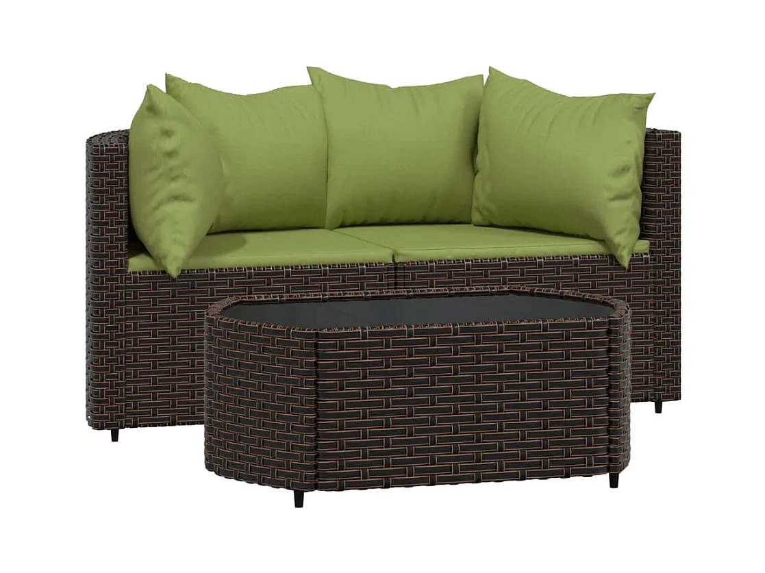 Salon de jardin 3 pcs avec coussins marron résine tressée