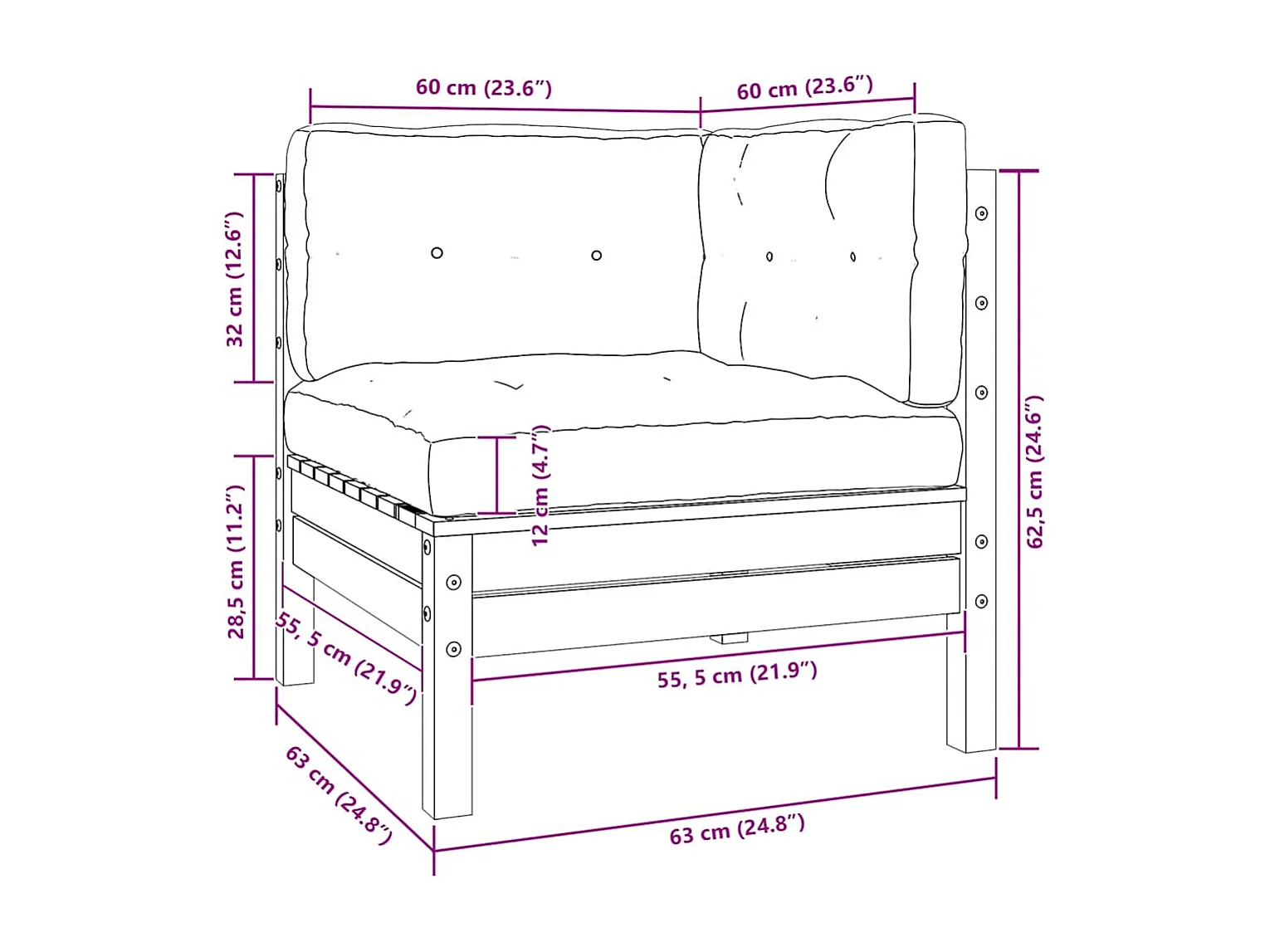 Canapé de jardin accoudoir 69x62x70,5 cm bois massif de pin
