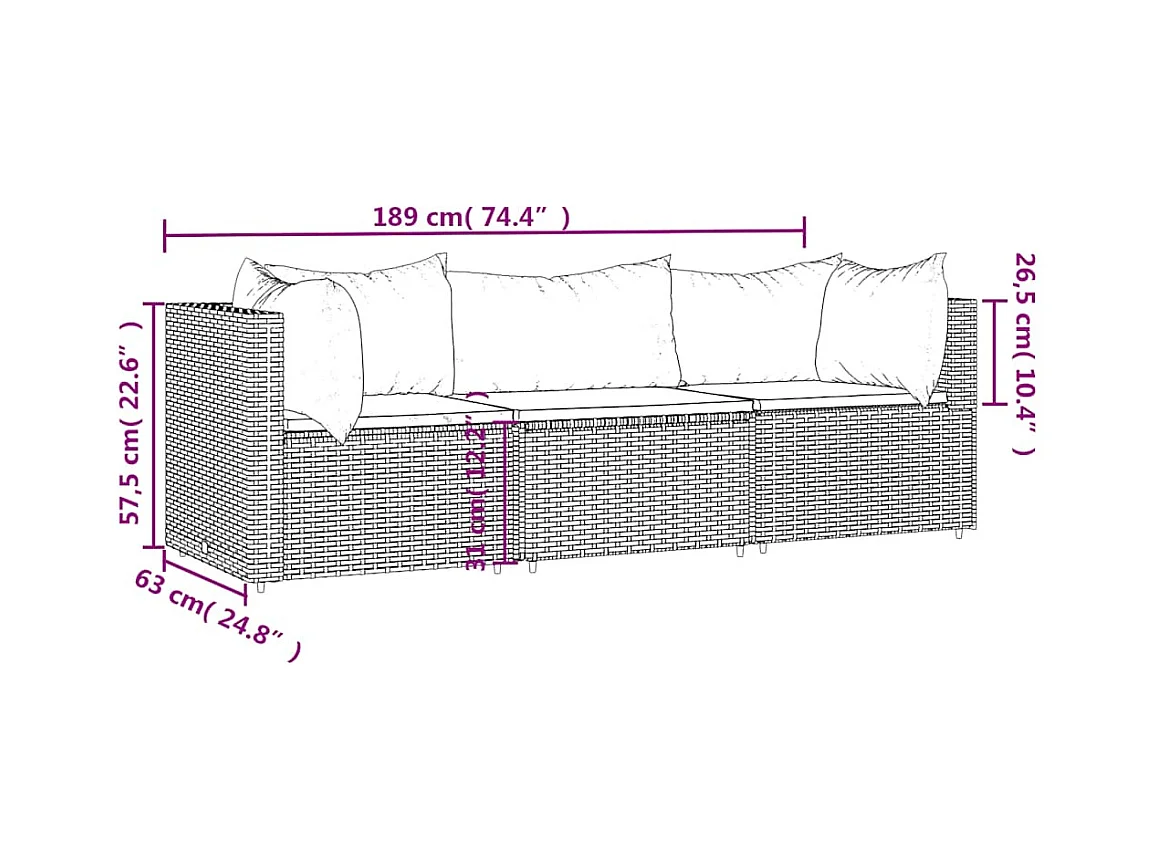 Salon de jardin 3 pcs avec coussins Noir Résine tressée