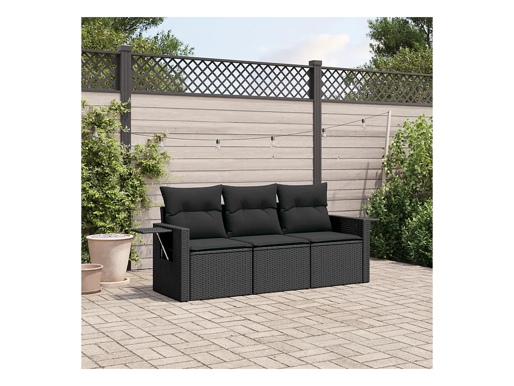 Salon de jardin 3 pcs avec coussins noir résine tressée FR74587