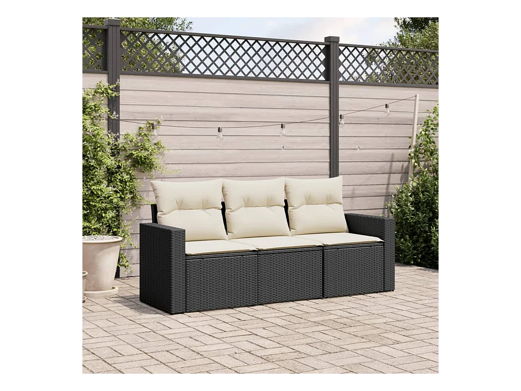 Salon de jardin 3 pcs avec coussins noir résine tressée BE67259