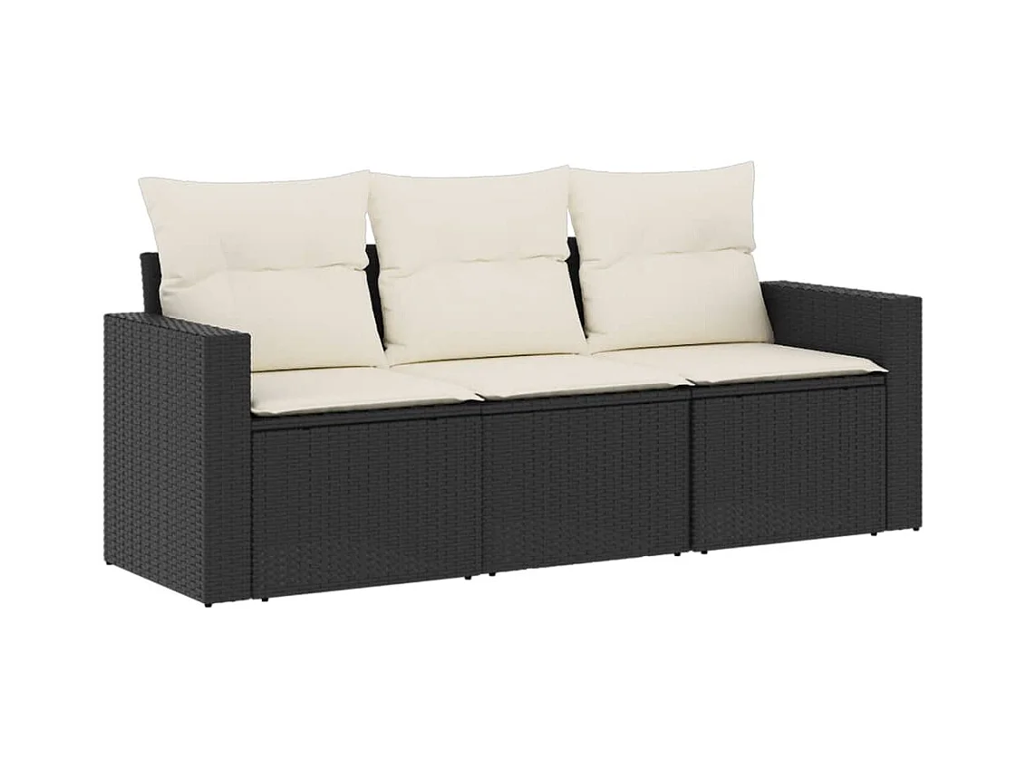 Salon de jardin 3 pcs avec coussins noir résine tressée BE36426
