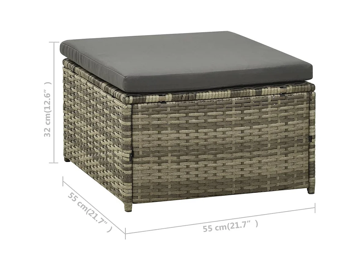 Salon de jardin 7 pcs avec coussins Résine tressée Gris