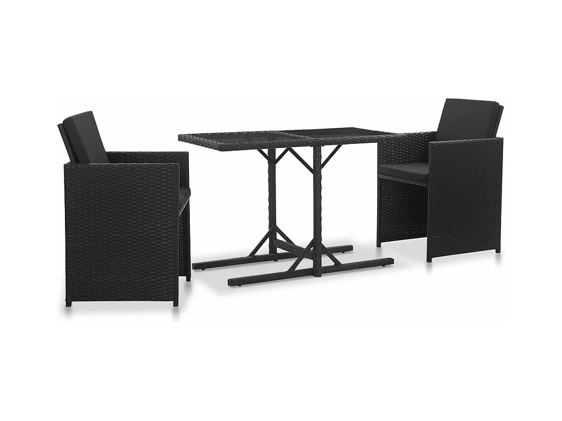 Salon de jardin 3 pièces avec coussins noir résine tressée