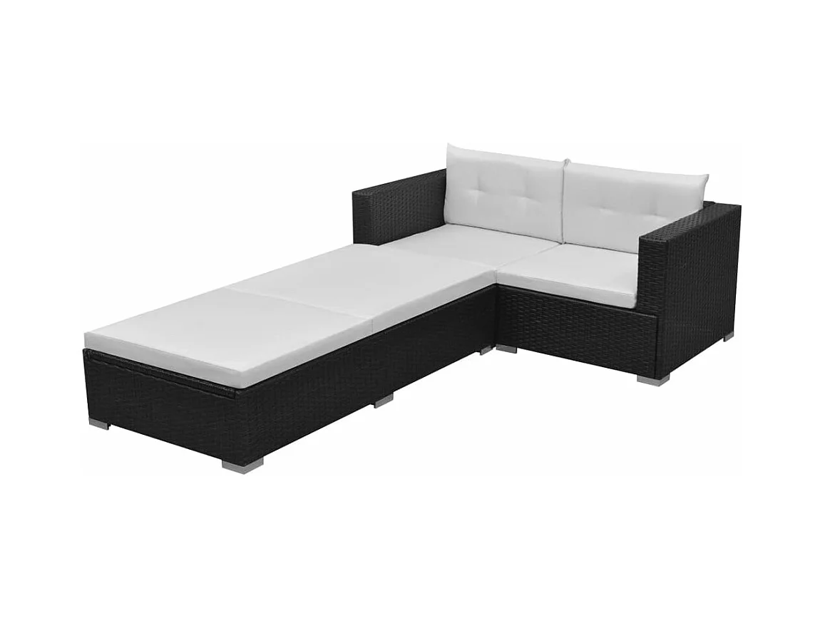 Salon de jardin 3 pcs avec coussins noir résine tressée BE22370