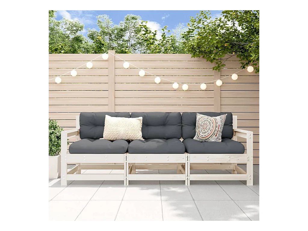 Salon de jardin 3 pcs avec coussins blanc crème bambou BE17654