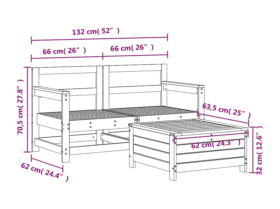 Salon de jardin 3 pcs bois de pin imprégné