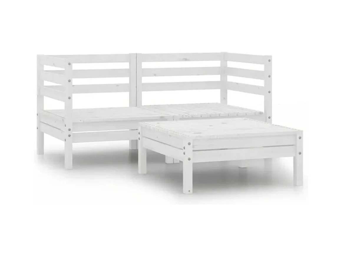Salon de jardin 3 pcs Bois de pin massif Blanc BE89194