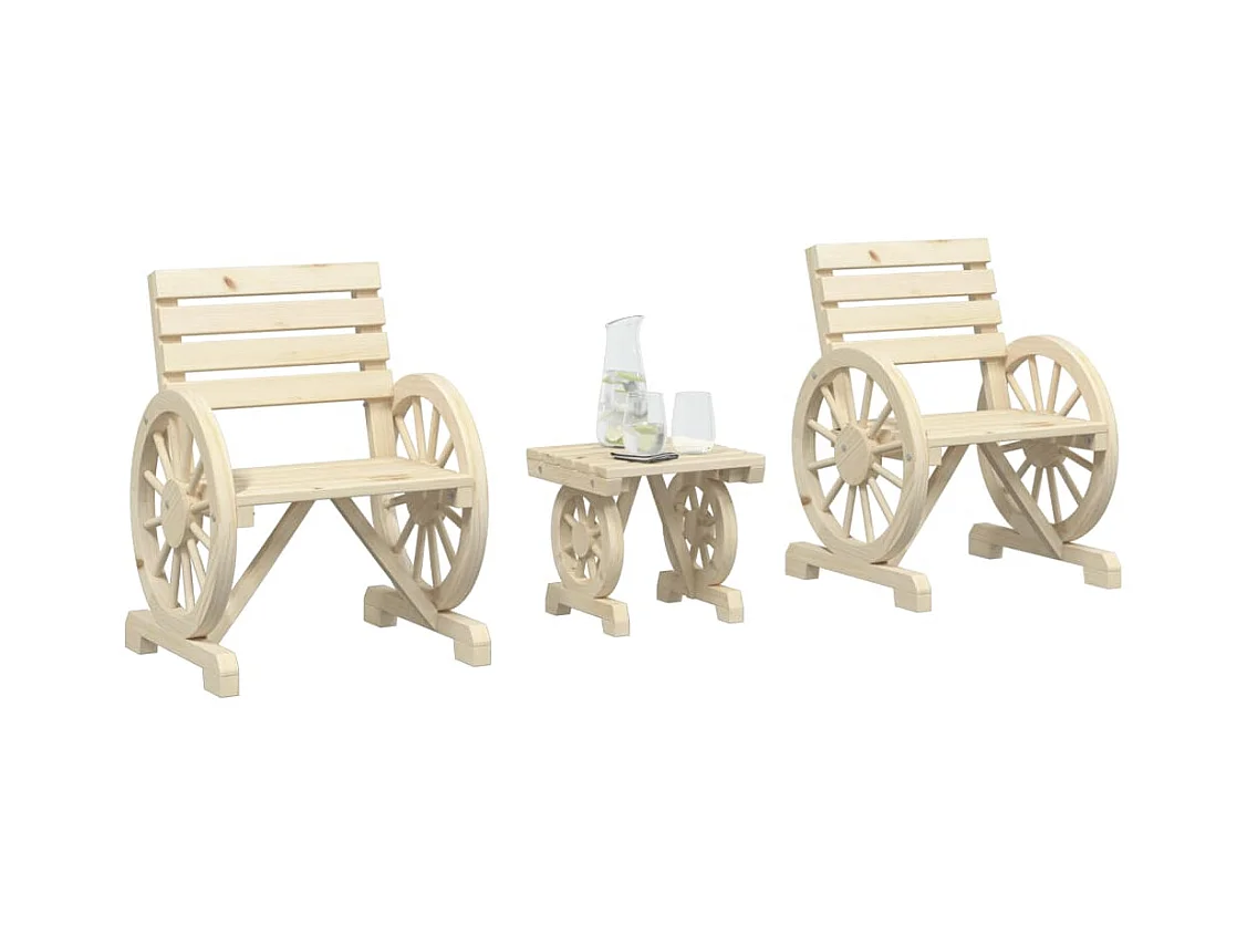 Salon de jardin 3 pcs avec coussins bois massif d'acacia