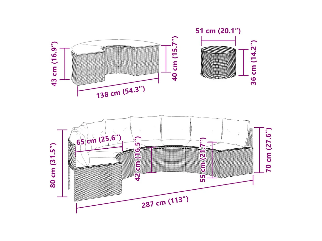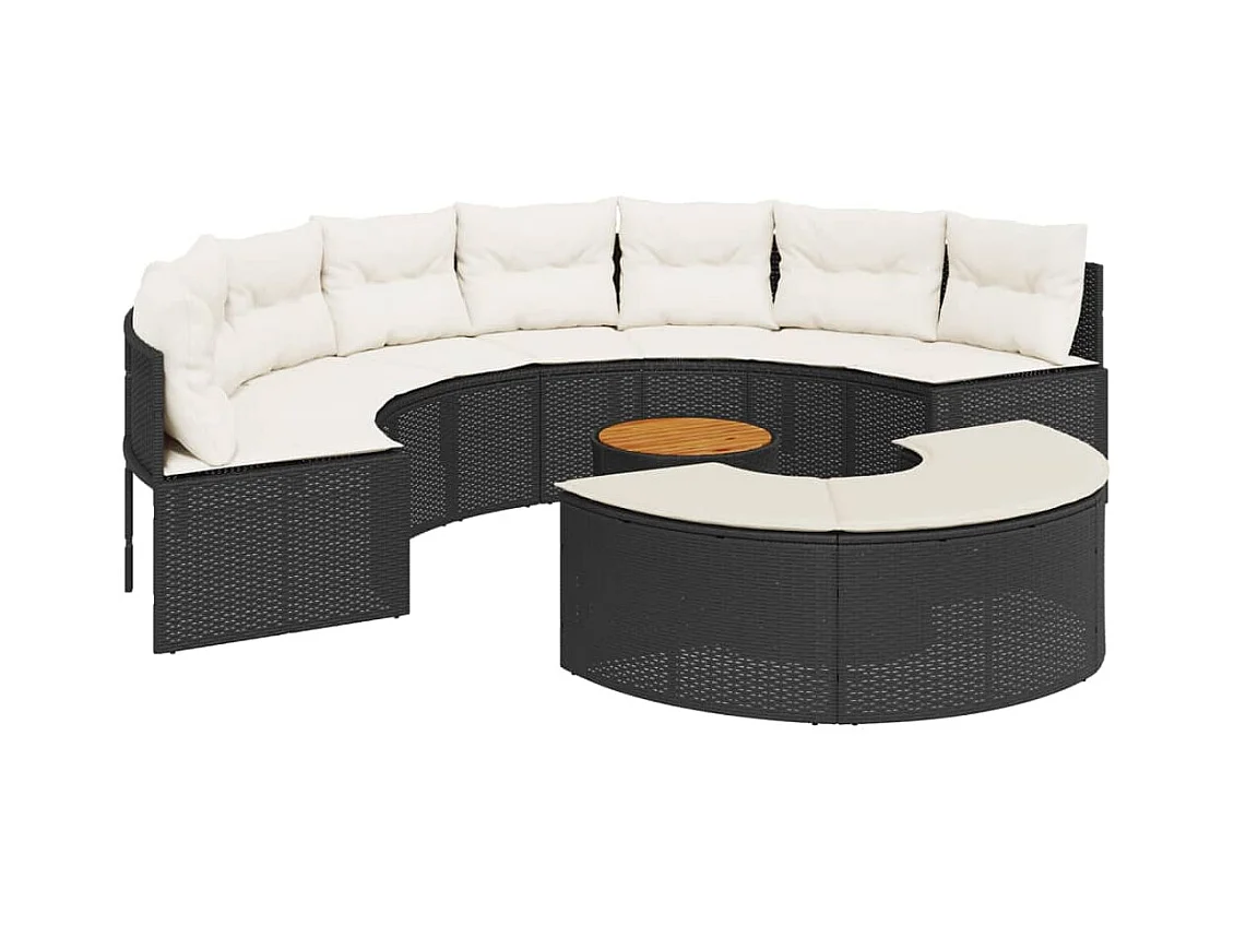 Salon de jardin 3 pcs demi-rond noir résine tressée