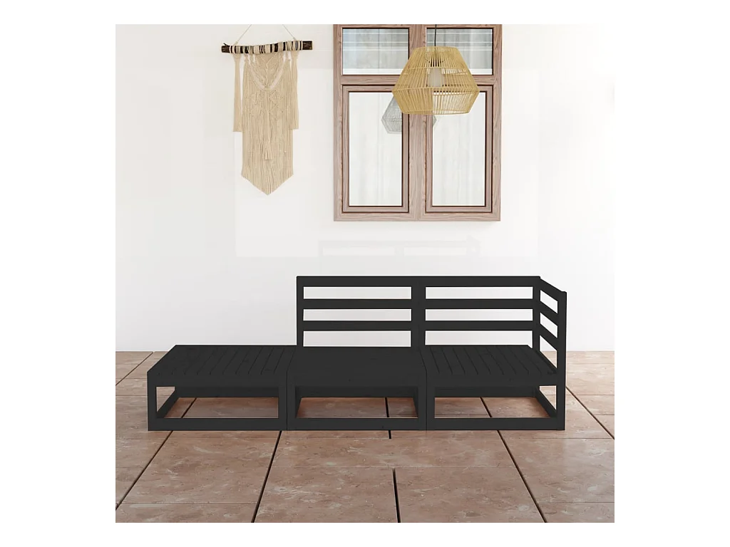 Salon de jardin 3 pcs noir bois de pin massif BE44294