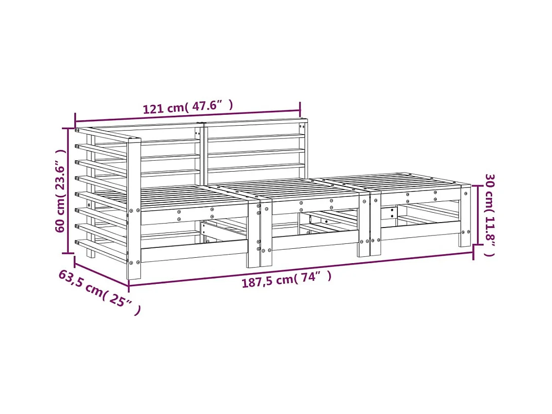 Salon de jardin 3 pcs noir bois de pin massif BE54953