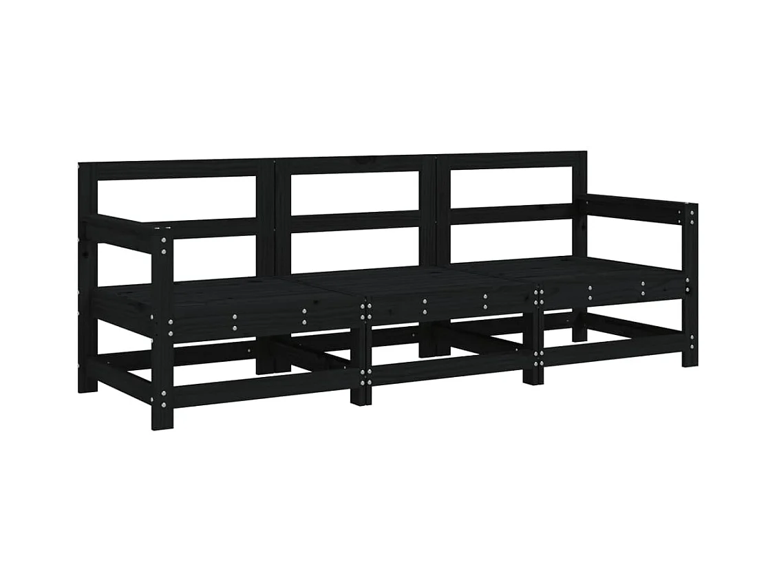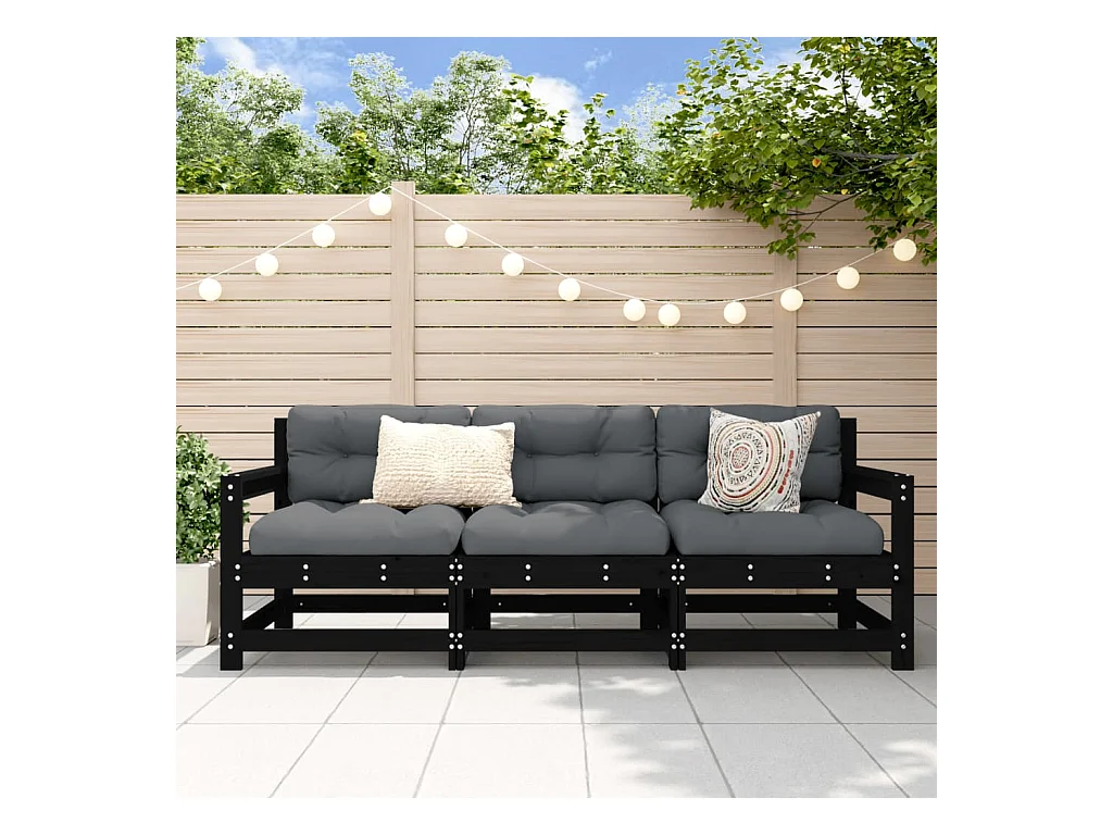 Salon de jardin 3 pcs noir bois massif de pin FR62007
