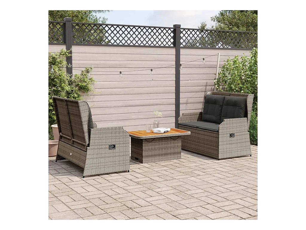 Salon de jardin avec coussins 3 pièces gris résine tressée