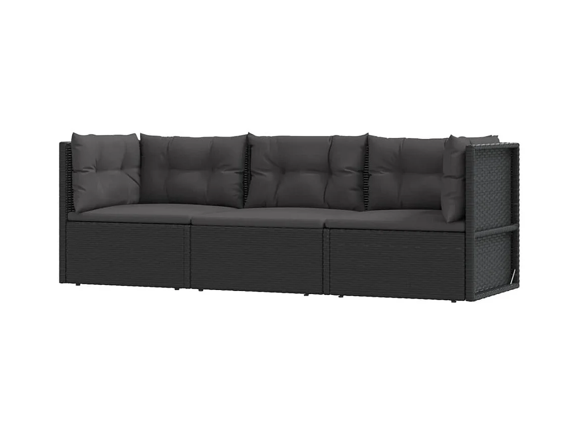 Salon de jardin 3 pièces avec coussins Résine tressée Noir