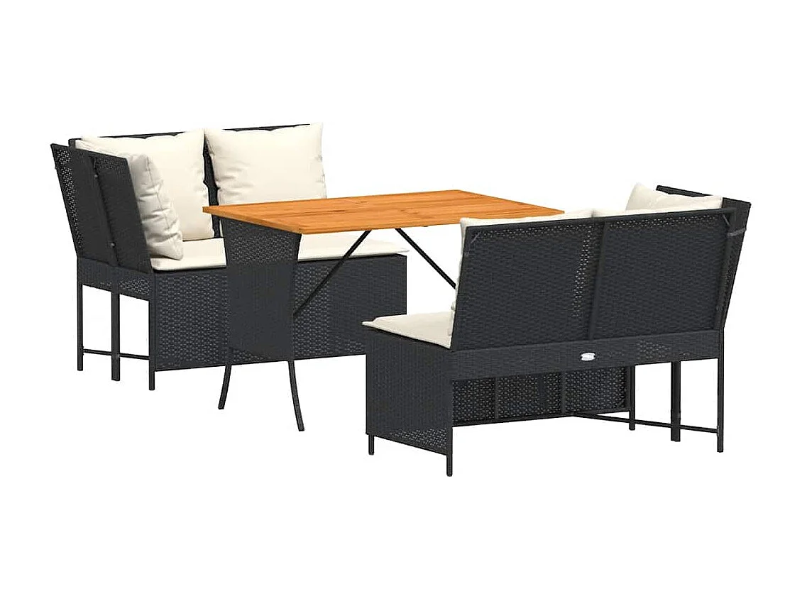 Salon de jardin 4 pièces avec coussins noir résine tressée