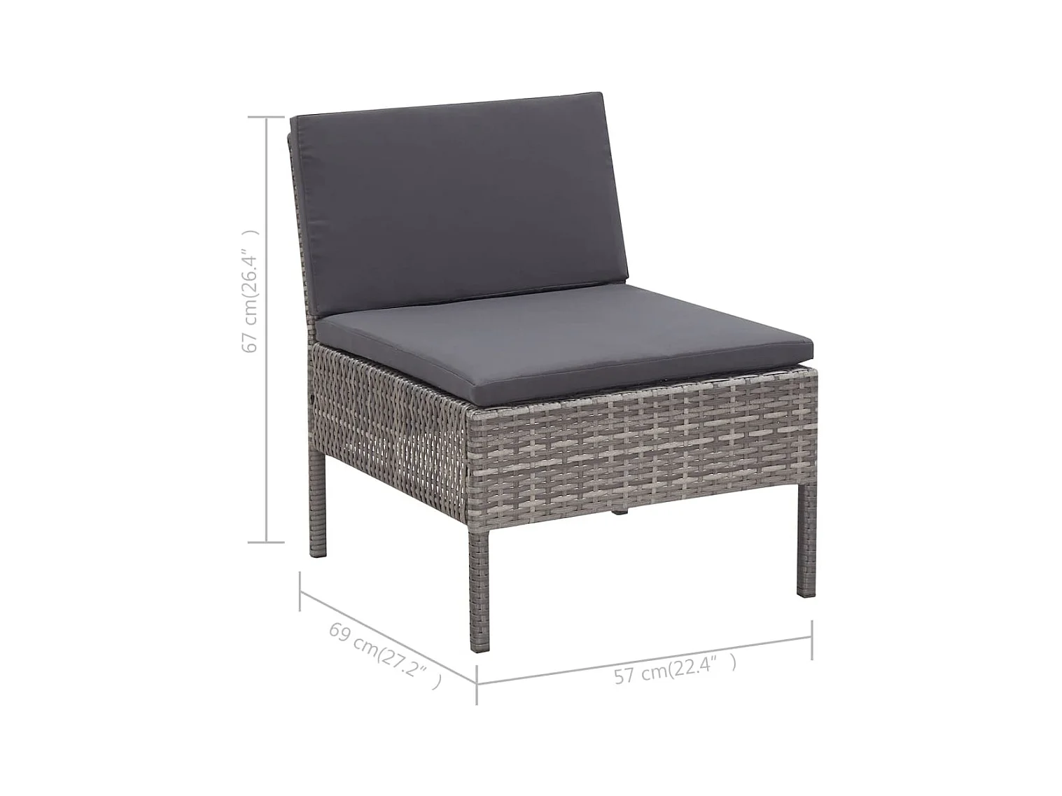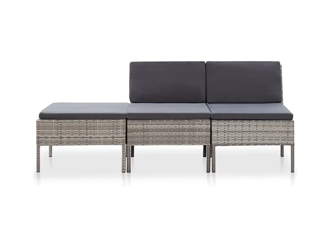 Salon de jardin 3 pièces avec coussins Résine tressée Gris