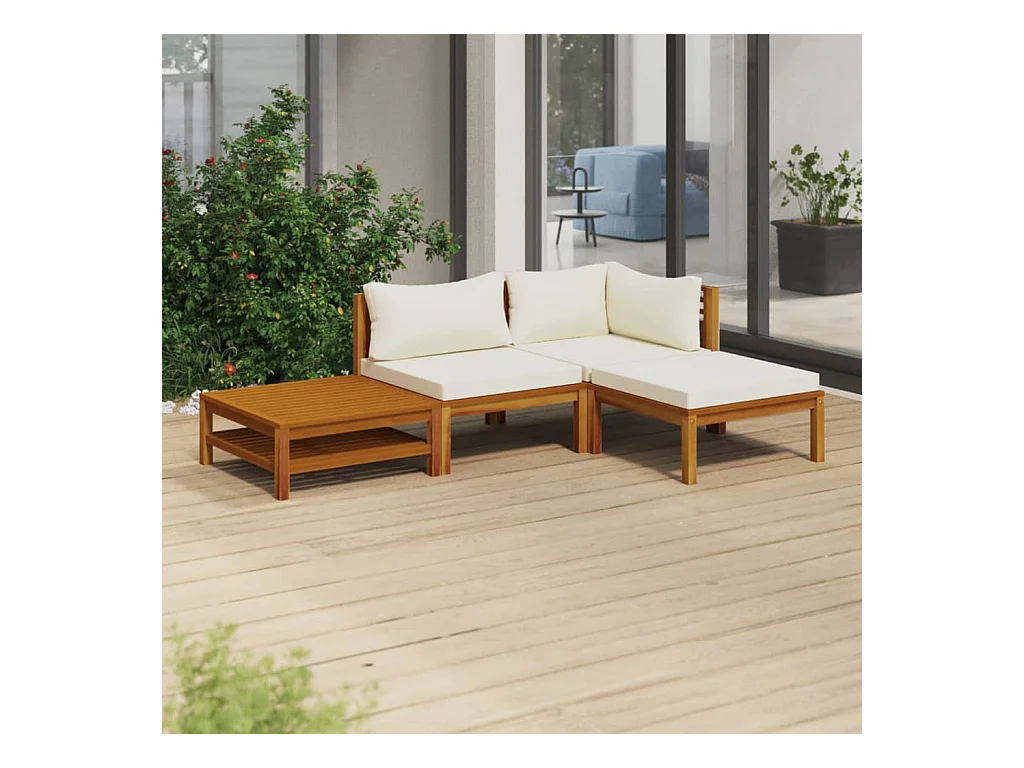 Salon de jardin 4 pcs avec coussin crème Bois d'acacia solide