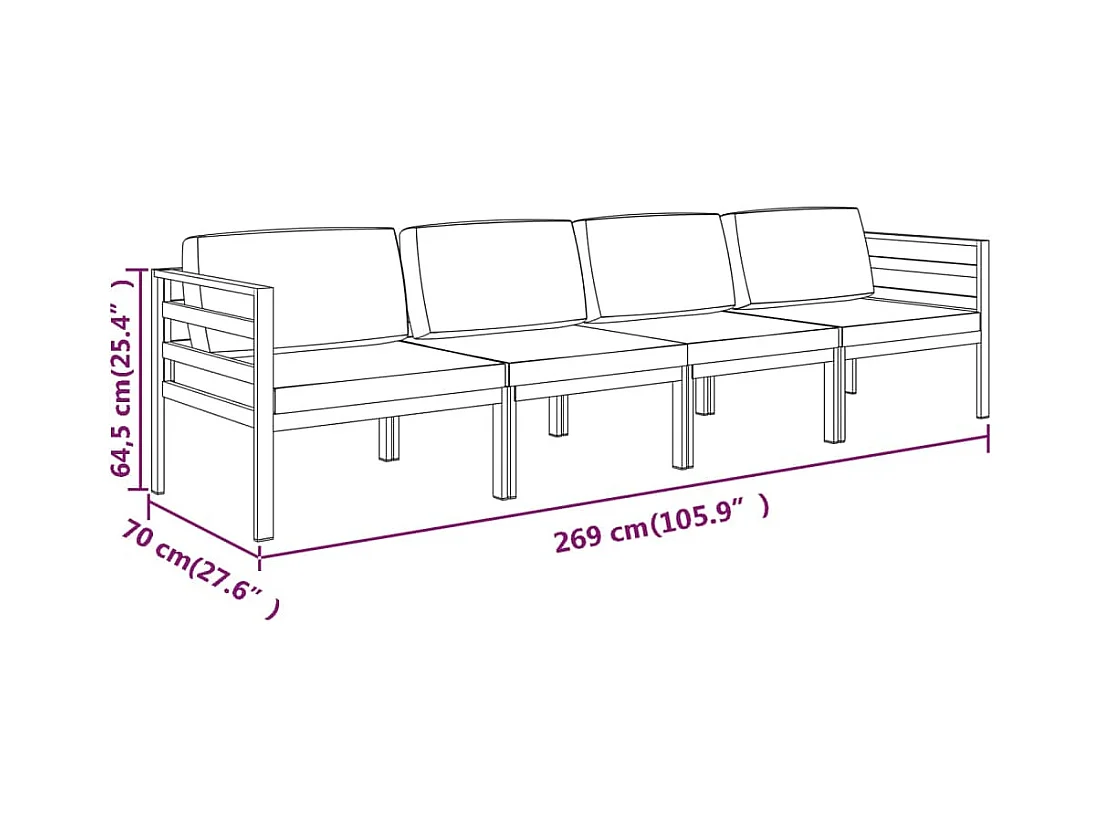 Salon de jardin 4 pcs avec coussins Aluminium Anthracite